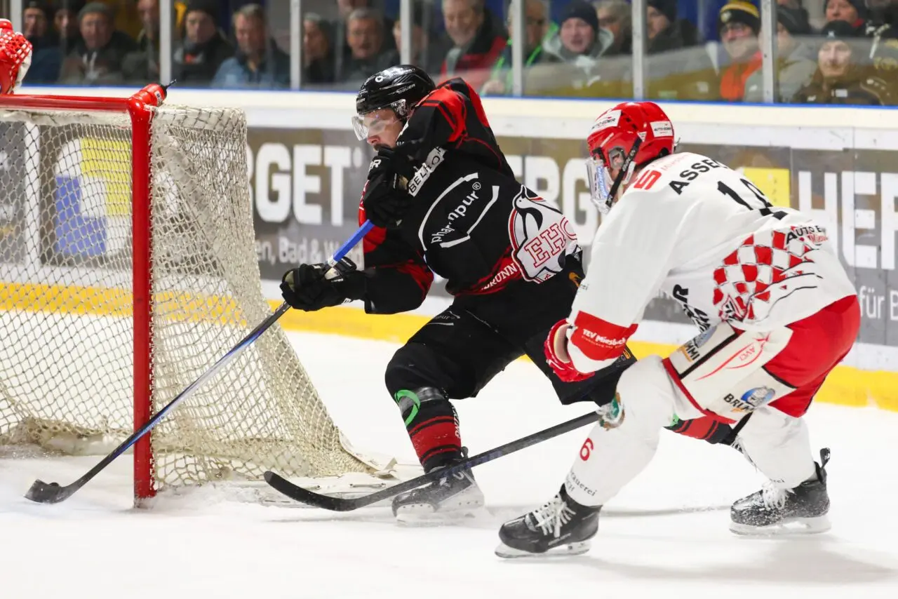 EHC started the second period well and continued to apply pressure. However, just as in the first period, the puck wouldn’t go in. In the 25th minute, the Brunnenstadt team had a good opportunity to make it 2-0. Just a minute later, Stefan Rodrigues danced through the offensive zone but was denied by goalie Timo Ewert. Miesbach tightened up defensively and created some scoring chances, but EHC still had the better opportunities. In the 29th minute, Marco Sternheimer hit the post; the puck simply wouldn’t go in. Luca Kinzel even had a good chance while shorthanded in the 34th minute, but it came to nothing. Miesbach finally got on the scoreboard in the 37th minute, scoring on the power play to tie the game at 1-1. The game was now wide open again.